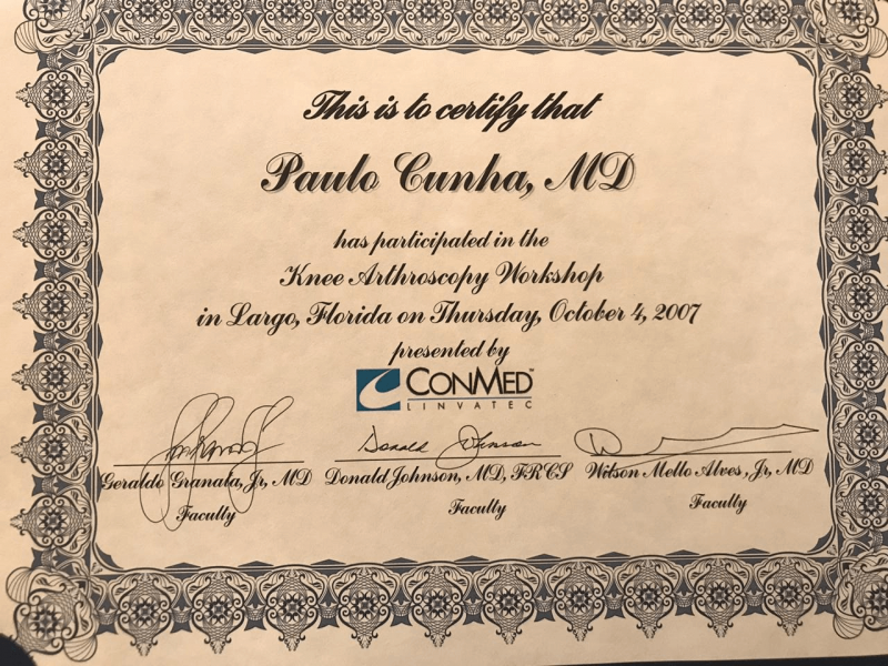 - Participação no Workshop de Artroscopia do joelho em Largo Flórida - Estados Unidos da América em 2007